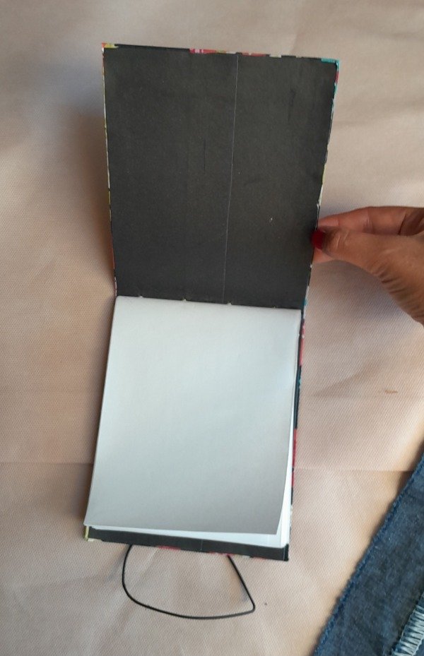 40 hojas reutilizadas lisas. Tapas de cartón fino reutilizado forrado en tela.