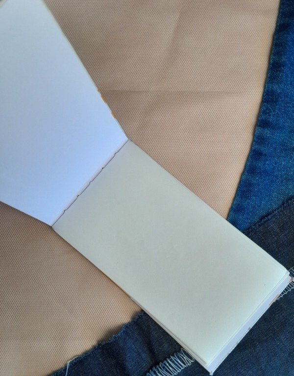 40 hojas reutilizadas lisas. Tapas de cartón fino reutilizado forrado en tela.