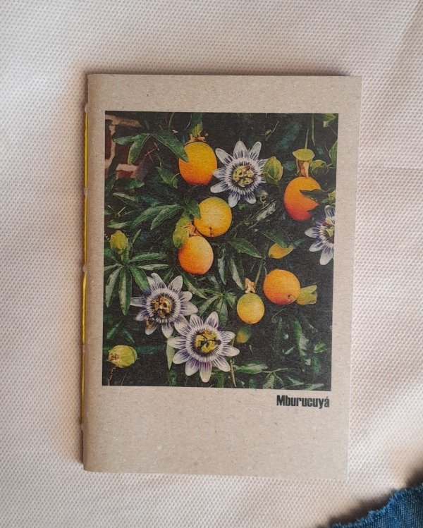 30 hojas de caña de azúcar lisas. Tapas de papel kraft impreso con imágenes de flora y fauna autóctona y paisajes locales.